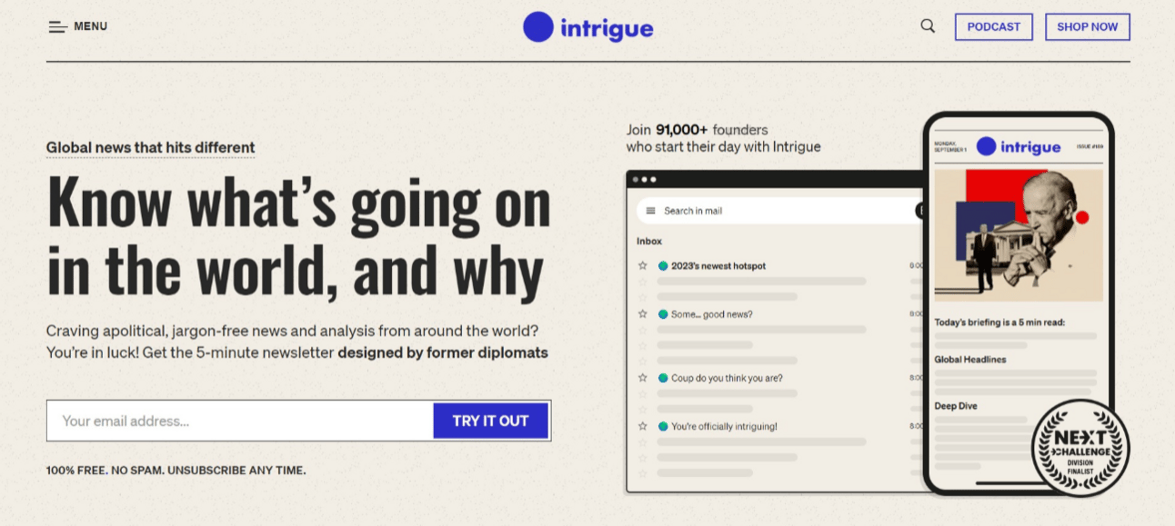 intrigue: Craving apolitical, jargon-free news and analysis from around the world? You’re in luck!