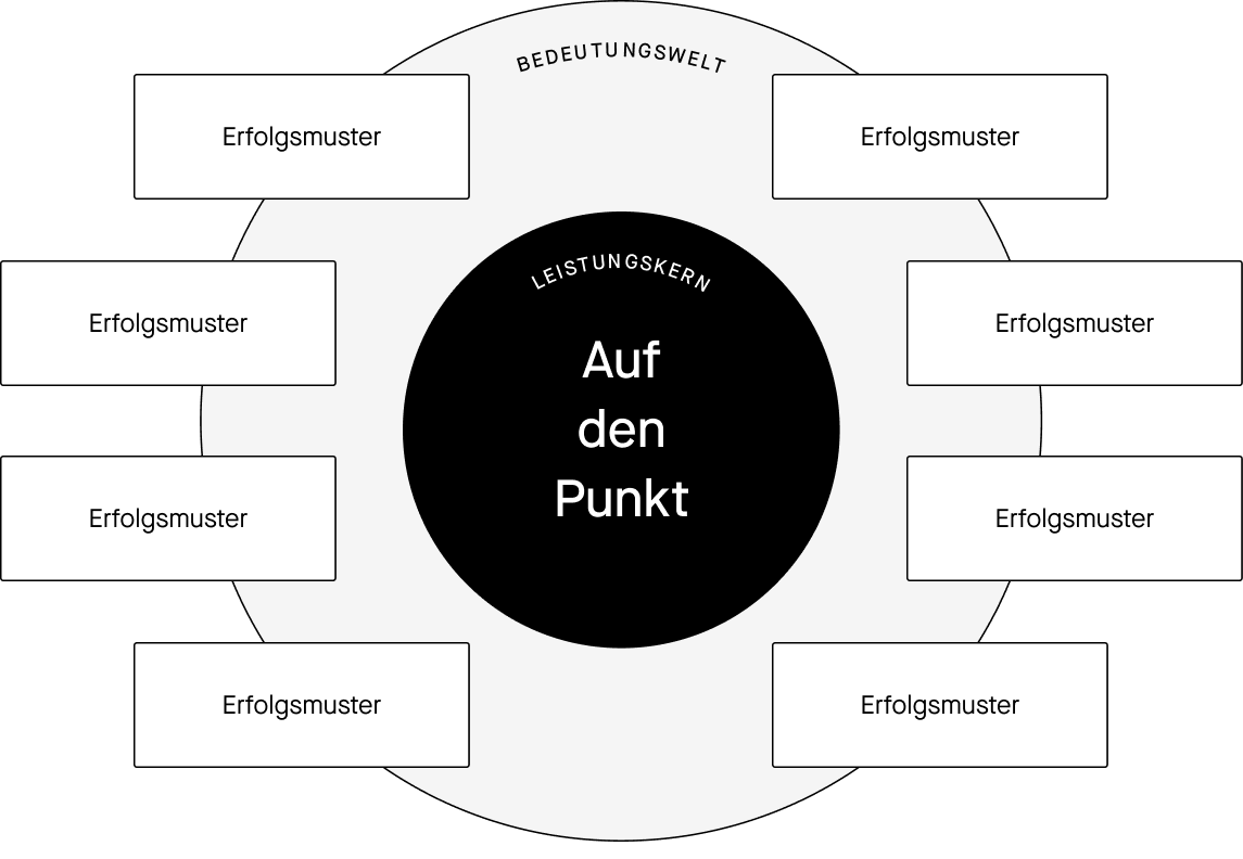 Um diesen Kern herum sind 6-8 Kriterien (Erfolgsmuster) aufgelistet, die erfüllt sein müssen, damit man diesen Leistungskern jederzeit einlöst.
